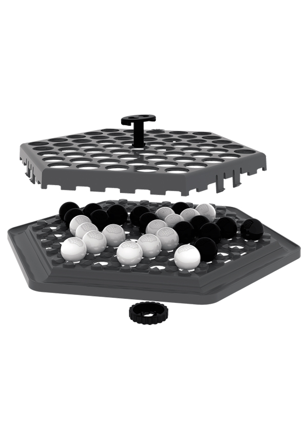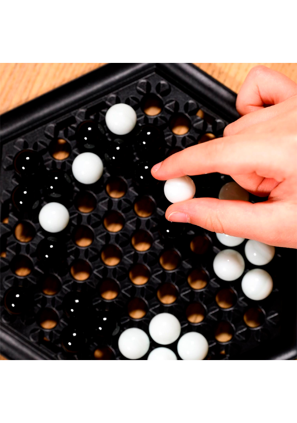 La idea central es que una columna de canicas tiene un peso determinado por la cantidad de canicas alineadas. Para mover la columna en un eje determinado, alguien deberá empujar con un grupo de canicas más pesado. Sin embargo, con seis direcciones posibles, es difícil defenderse perfectamente.