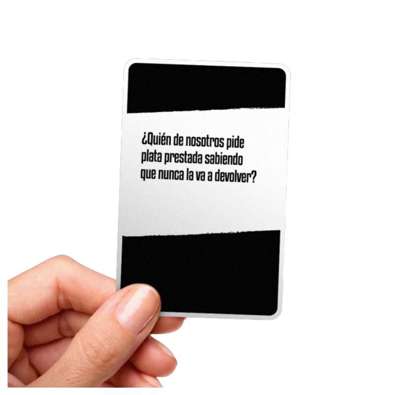 En Amigos de Mierda va a ganar el peor de ustedes ¡Pero lo van a señalar los demás! En cada ronda las cartas te van a preguntar, por ejemplo: En un apocalipsis zombie ¿Cuál de tus amigos sería el primero en morir? y a la cuenta de 3 todos deben señalar a alguien, el que sea elegido por la mayoría 5 veces ¡gana el juego!