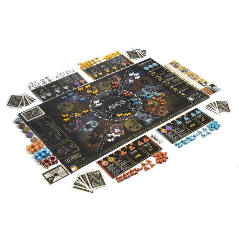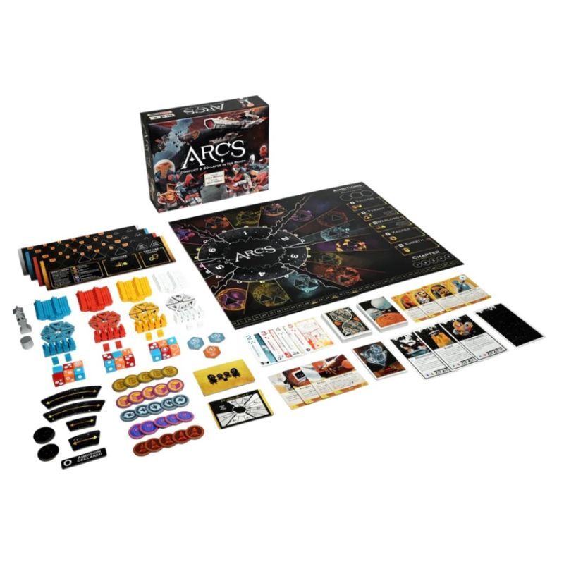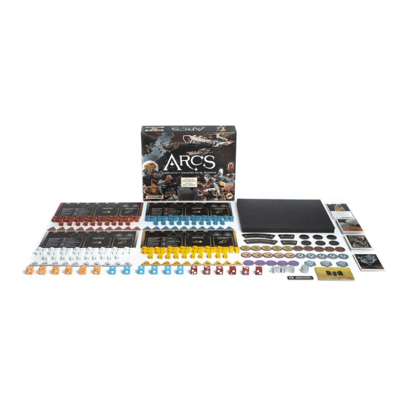 Arcs es un agudo juego de estrategia de ciencia ficción para 2-4 jugadores, ambientado en un universo oscuro pero disparatado. Los jugadores representan a los funcionarios de un Imperio distante, decadente y negligente, que ahora son libres para competir por el dominio, ya sea mediante la batalla, la recolección de recursos escasos o la intriga diplomática. Prepárate para giros dramáticos mientras te lanzas a esta lucha galáctica.