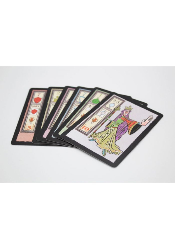 El juego incluye cinco palos únicos, cada uno asociado a un objeto y color representativo de los distintos estamentos sociales de la Edad Media. Además, figuras especiales como La Reina, El Ermitaño y El Loco aportan habilidades únicas que pueden cambiar el rumbo de cada partida.