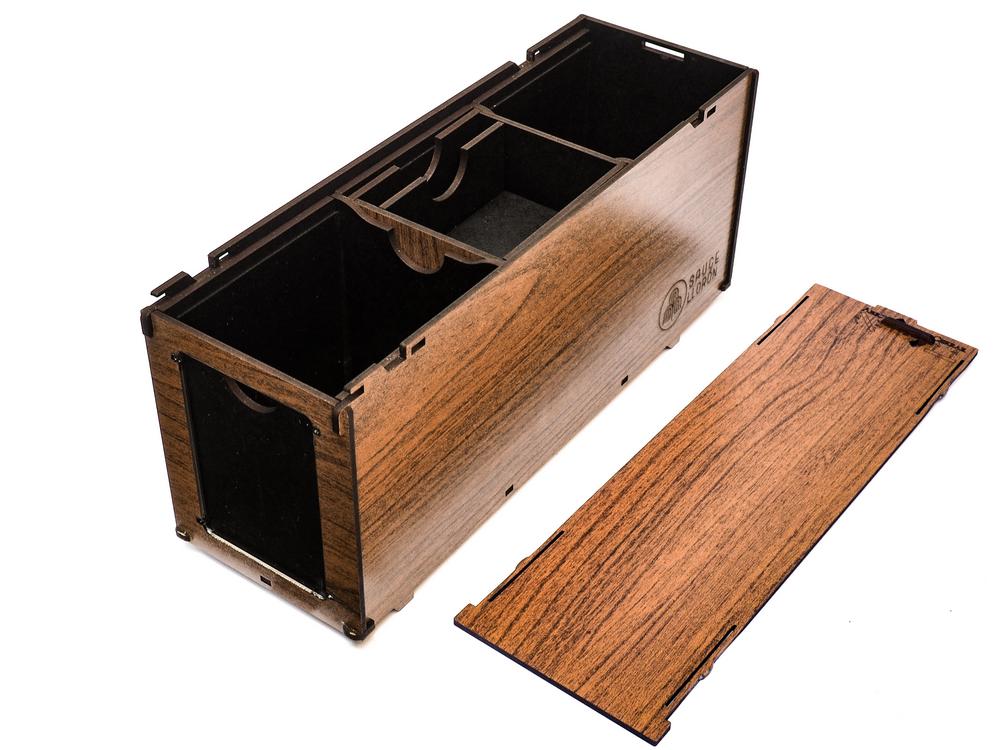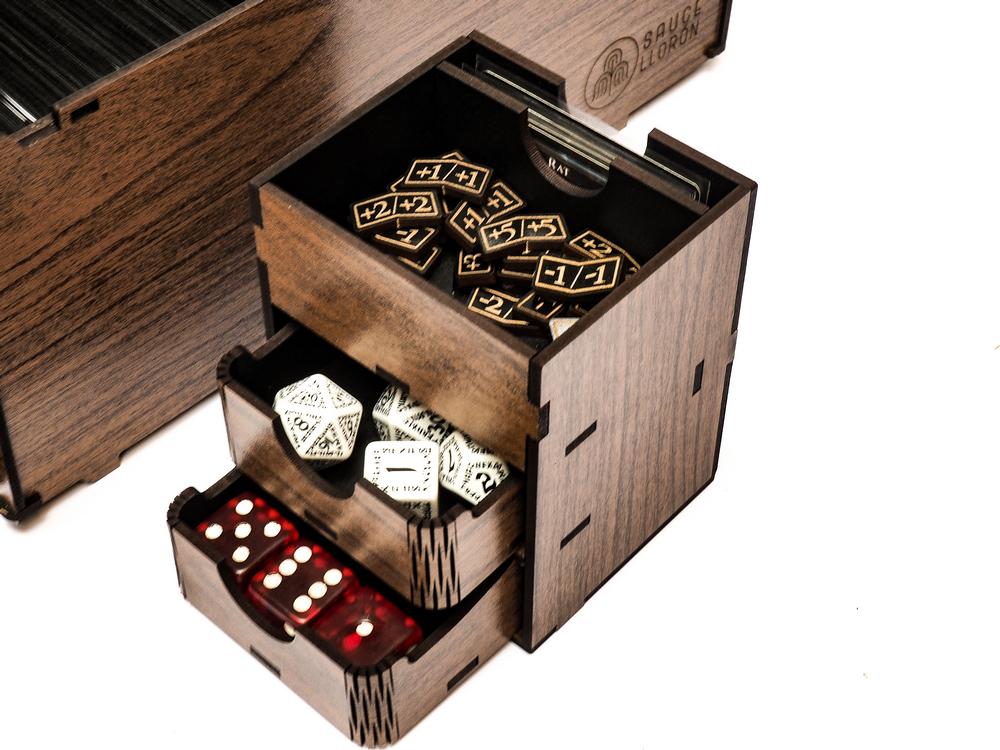 •Guarda 200+ o 500+ cartas con doble funda o extra gruesas, almacenados en posición vertical.