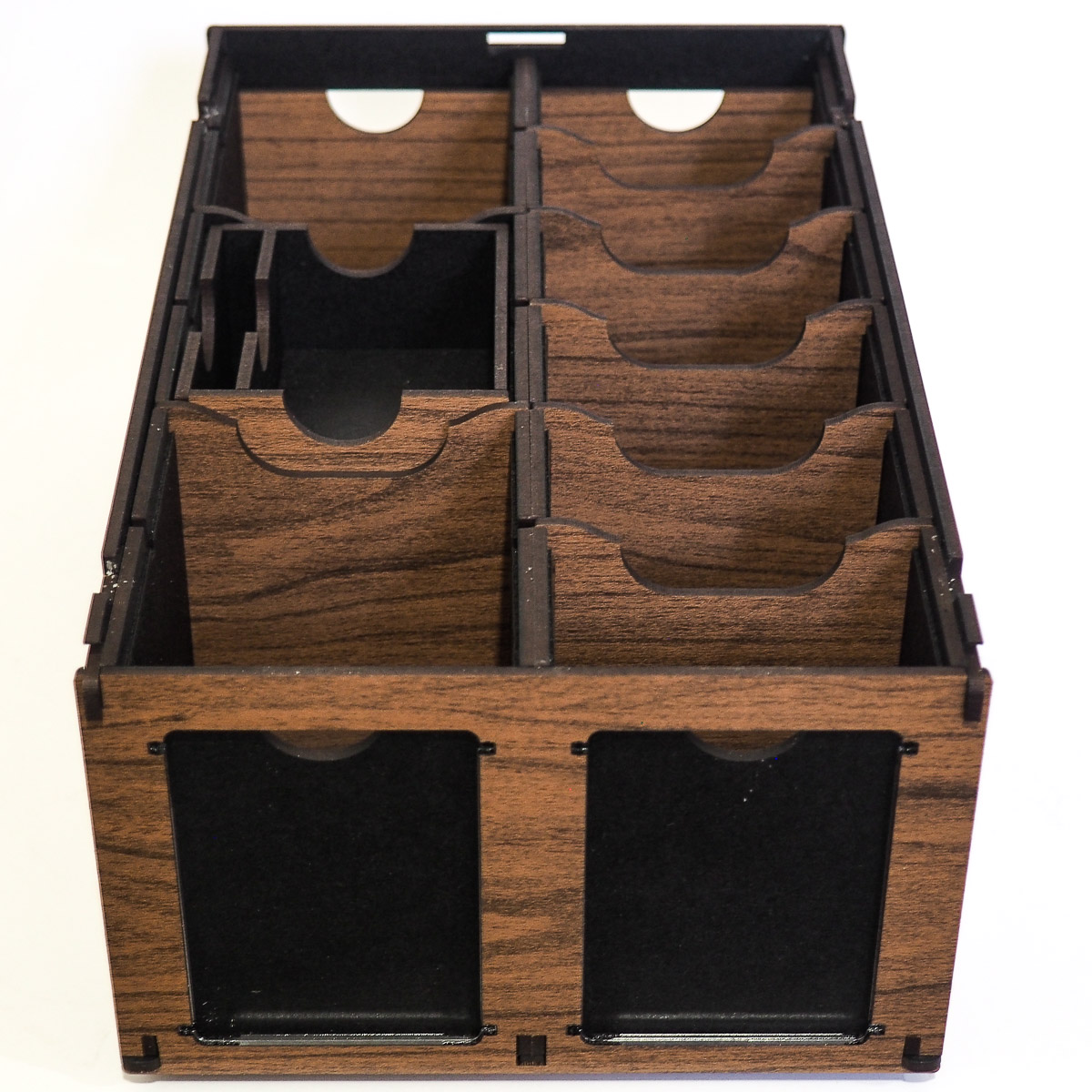 Guarda, transporta y organiza tu colección con la máxima elegancia y protección. Con un interior de eco-cuero negro y acolchado de espuma, esta caja premium mantiene tus cartas seguras y perfectamente organizadas. Su ventana acrílica frontal te permite identificar fácilmente su contenido sin necesidad de abrirla.
