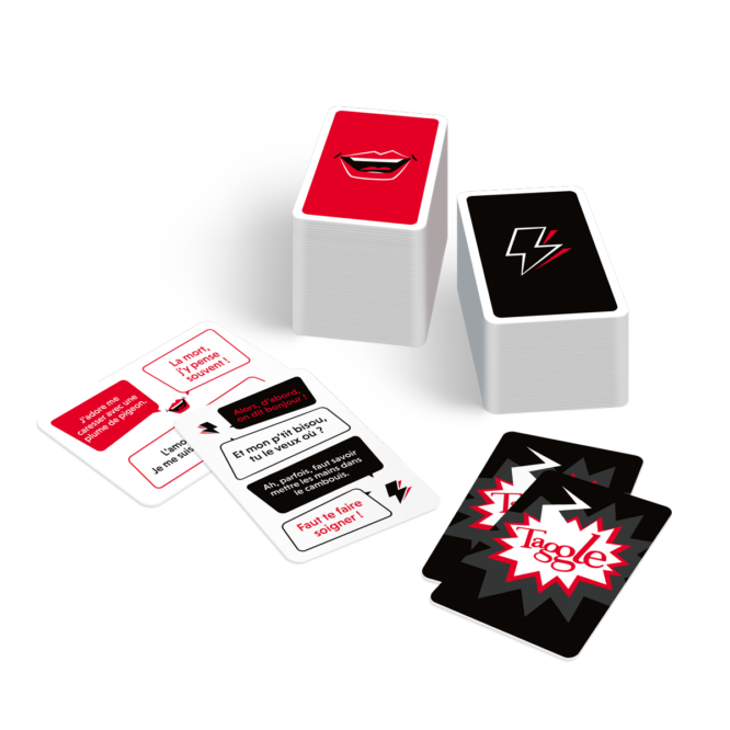 Contenido: 330 afirmaciones, 480 remates, dispensador de cartas.