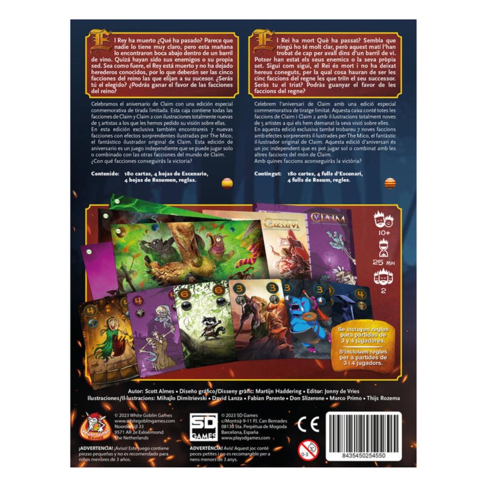 Celebramos el aniversario de Claim con una edición especial limitada que nos trae todas las facciones de Claim y Claim 2 con ilustraciones totalmente nuevas de 5 artistas a los que les hemos pedido su visión sobre ellas. También hay 7 nuevas facciones con efectos sorprendentes ilustradas por The Mico, el fantástico ilustrador original de Claim. Esta edición de