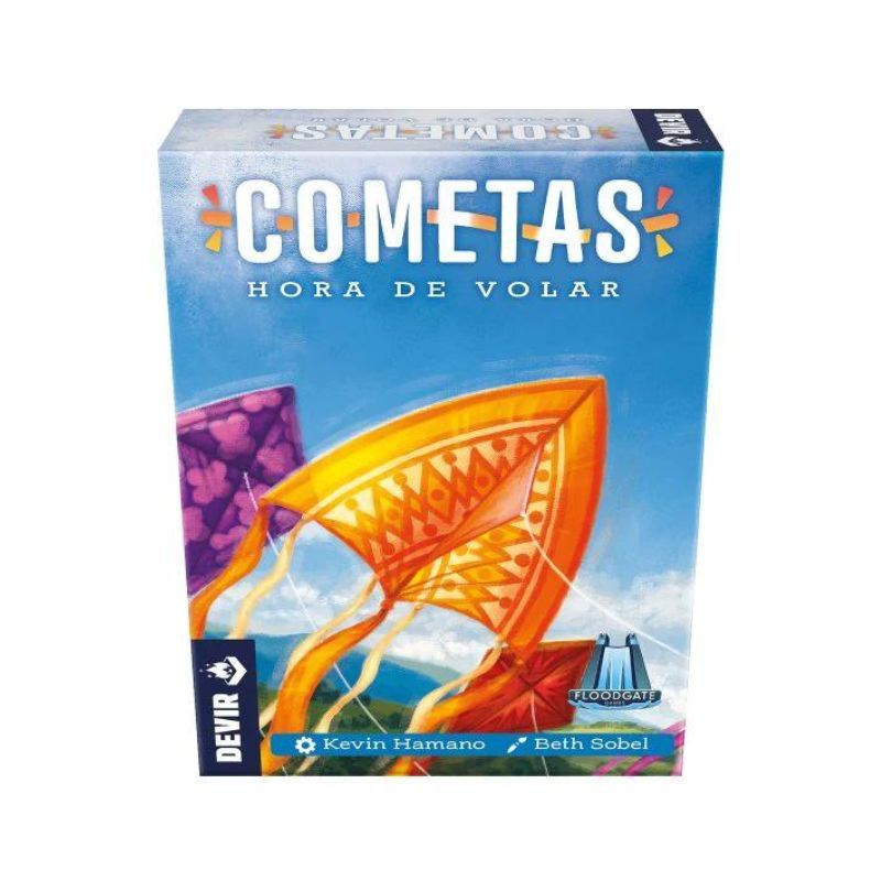 Diseñado por Kevin Hamano e ilustrado por Beth Sobel, Cometas ofrece partidas para grupos de 2 a 6 jugadores, a partir de 10 años, de unos 10 minutos de duración. En Cometas los jugadores colaboran para mantener en vuelo todas las cometas, representadas por relojes de arena. Por turnos, tendréis que jugar una carta, voltear los relojes correspondientes y robar una carta nueva, asegurándoos siempre de que no se agote el tiempo de ninguno de los relojes. Si queréis ganar, tendréis que coordinaros para jugar todas las cartas… ¡Y estar siempre preparados para capear una tormenta!