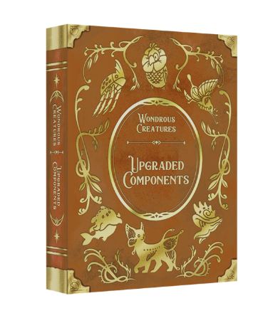 CRIATURAS MARAVILLOSAS: PACK DE MEJORA DE COMPONENTES. Actualiza el cartón por madera y metal! Incluye: 78 fichas de huevo de madera 5 fichas de colocación de huevos de madera 8 fichas de puntuación de madera 20 fichas de energía de madera 3 fichas de objetivo de madera (modo individual) 12 fichas de red de madera 18 trofeos metálicos