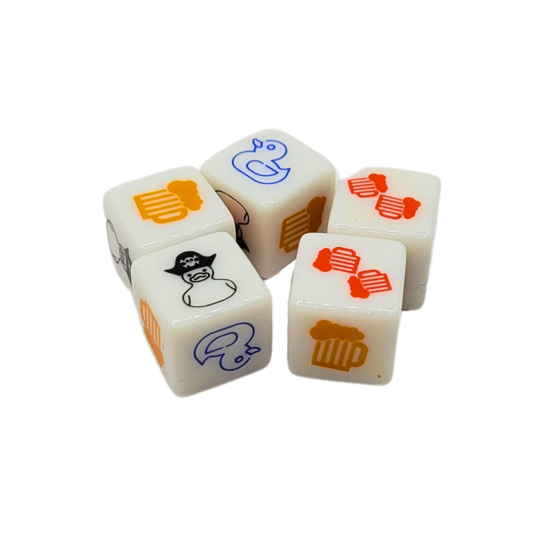 ¡Juega las habilidades de tus Patos, engaña y haz tomar a tus amigos mientras ganas tus hielos azules en este divertido de juego de Dados, roles ocultos y copete! ¡Incluye cartas plásticas a prueba de agua! De 3 a 8 jugadores, a partir de los 18 años. Componentes: