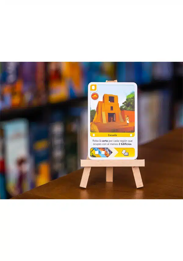 Colocas el edificio en el tipo de terreno correspondiente del tablero y añades la carta a tu zona personal, en una pila según su color. A continuación, se activan todos los efectos de esa pila, desde la carta inferior hasta la superior, creando potentes cadenas de acciones.