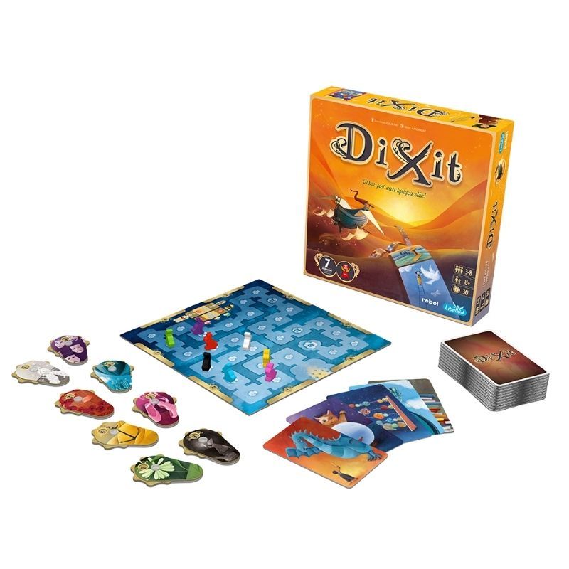 ¡Dixit es un creativo juego de deducción, bellamente ilustrado, donde tu imaginación crea increíbles historias! En este galardonado juego de mesa, los jugadores podrán utilizar la hermosa imaginería de sus cartas para engañar a sus rivales y adivinar cuál es la carta que mejor se adapta a la historia. Dixit es un juego sorprendente, encantador y de reglas fáciles, para disfrutar con amigos y familiares por igual. ¿Cómo se juega? En tu turno, como narrador, elige una carta de tu mano y da una pista sobre ella (palabras, frases, canciones, etc.). Por ejemplo: “Viaje”. Todos los jugadores eligen de entre sus cartas, la que mejor se adapte a la pista. Baraja y revela todas las cartas elegidas. Todos los jugadores, en secreto, intentan adivinar tu carta, utilizando las fichas de voto. Una vez que todos hayan votado, ¡Comienza la ronda de puntuación!