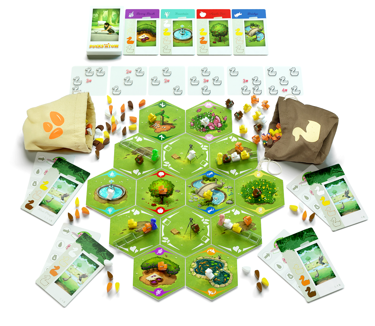 En Ducks in Tow, estás caminando por el parque alimentando a los patos con su comida favorita. Cuando los alimentas, comienzan a seguirte y debes llevarlos a su ubicación favorita en el parque.