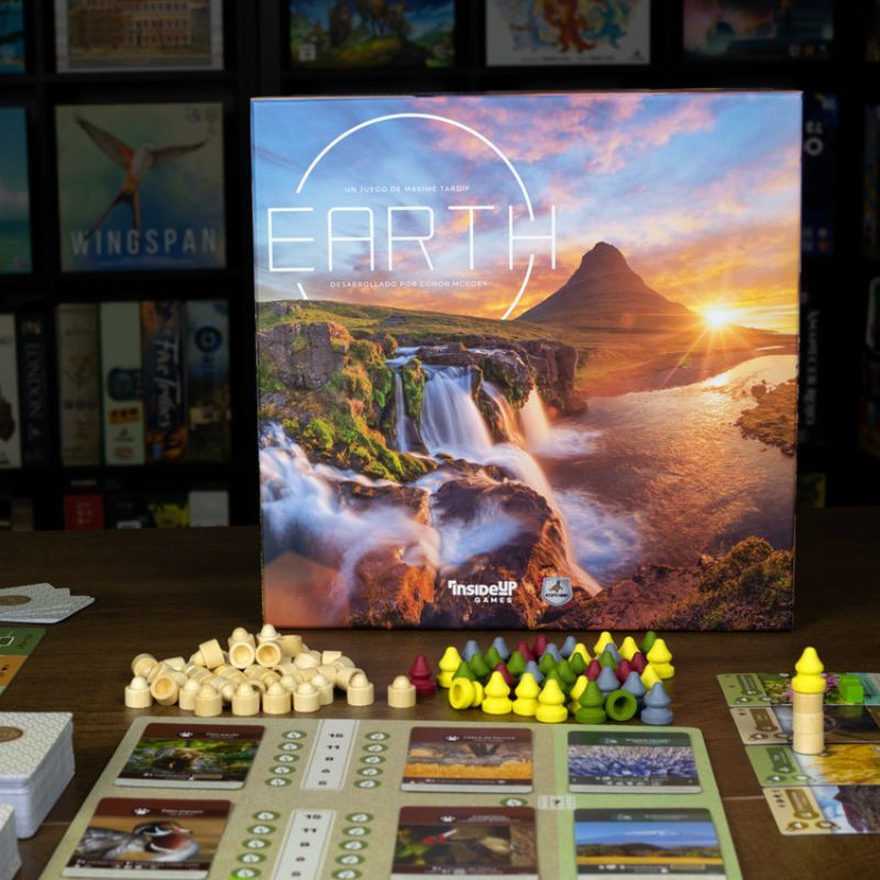 Earth es un juego de mundo abierto de 1 a 5 jugadores centrado en la creación de motores de producción, con reglas sencillas pero numerosas posibilidades estratégicas.