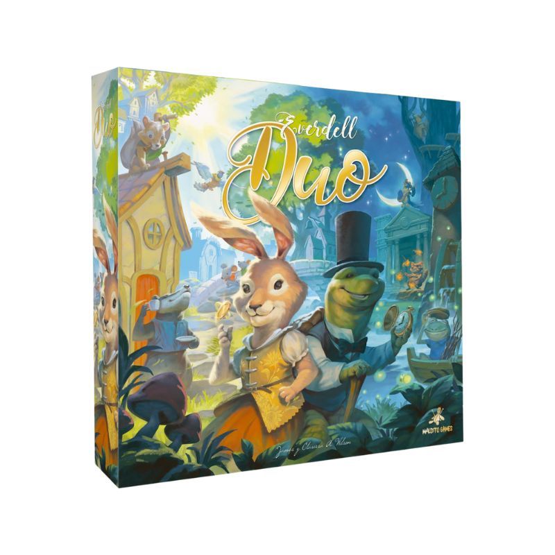En Everdell Duo, compites contra otra persona u oponente virtual, o juegas de forma cooperativa para obtener la mayor cantidad de puntos. Para lograrlo, colocas trabajadores para recoger recursos que pagar para jugar cartas bocarriba frente a ti, creando tu propia ciudad en el bosque.