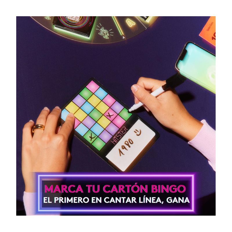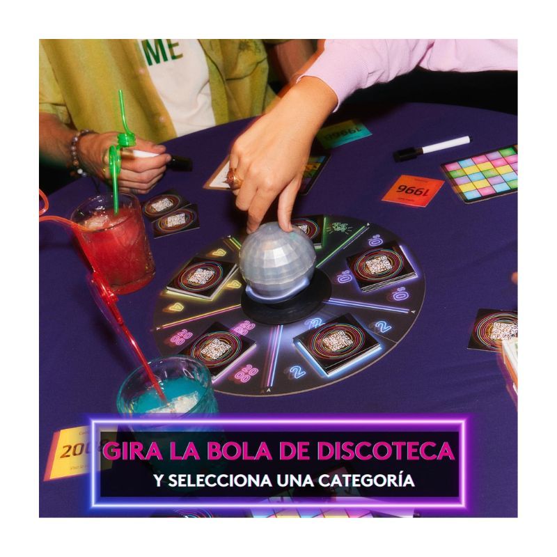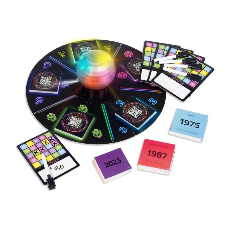 Gira la bola de discoteca para revelar la categoría con la que jugarás, escanea la tarjeta y deja que suene la música. Adivina la década, identifica cantantes o grupos, elige el año exacto o determina si es antes o después de la década de 2000. El primero en cantar “¡Bingo!” será el ganador de Hitster Bingo.