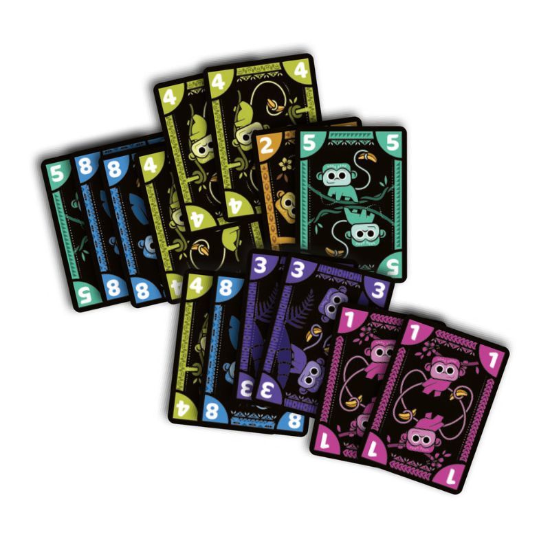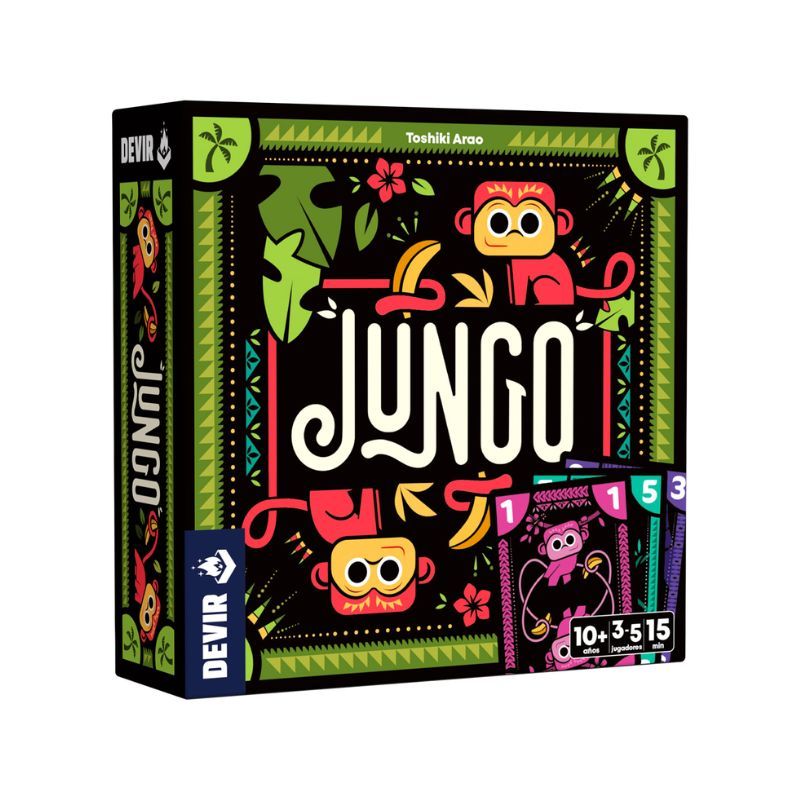 Diseñado por Toshiki Arao e ilustrado por Laura Michaud (Hanabi, Trio), este juego de cartas lo pueden disfrutar grupos de 3 a 5 jugadores a partir de los 10 años. Jungo nos reta a deshacernos de todas las cartas antes que lo hagan nuestros oponentes, formando y lanzando conjuntos de cartas.