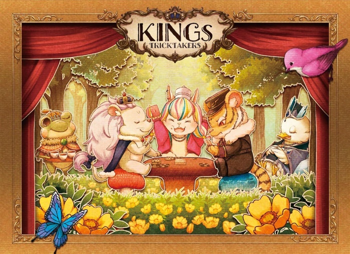 En KINGs, los jugadores draftearan su grupo de personajes lindos, cada uno con una habilidad única, y competirán para ser coronados como el “Verdadero TrickTaker”. El juego consta de 3 rondas. Cada jugador drafteará su grupo, incluyendo al Rey, la Reina y el Jack, más 3 personajes adicionales. Se reparten 5 cartas y los jugadores organizan su grupo: 2 personajes al frente y 1 al reverso para realizar una apuesta. Se juegan 5 trucos siguiendo reglas de seguimiento, con algunas excepciones. Al final de los trucos, se otorgan puntos según las apuestas y habilidades de personajes. En la ronda 3 se pueden hacer 1-2 apuestas, pudiendo usar el Jack. Después de 3 rondas, gana el jugador con más puntos.