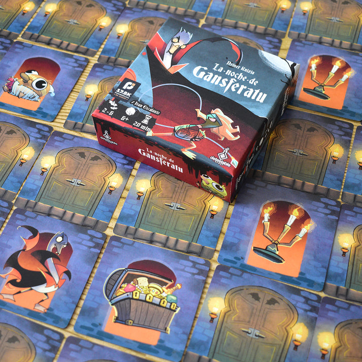 La Noche de Gansferatu es un juego de estrategia y suspenso en el que los jugadores exploran el castillo de Cuacvania en busca de aldeanos perdidos y tesoros ocultos. Pero cuidado: los peligros están por todas partes. ¡Los temibles murciegansos y el mismísimo Gansferatu pueden aparecer en cualquier momento y hacerte perder todo lo que has conseguido!