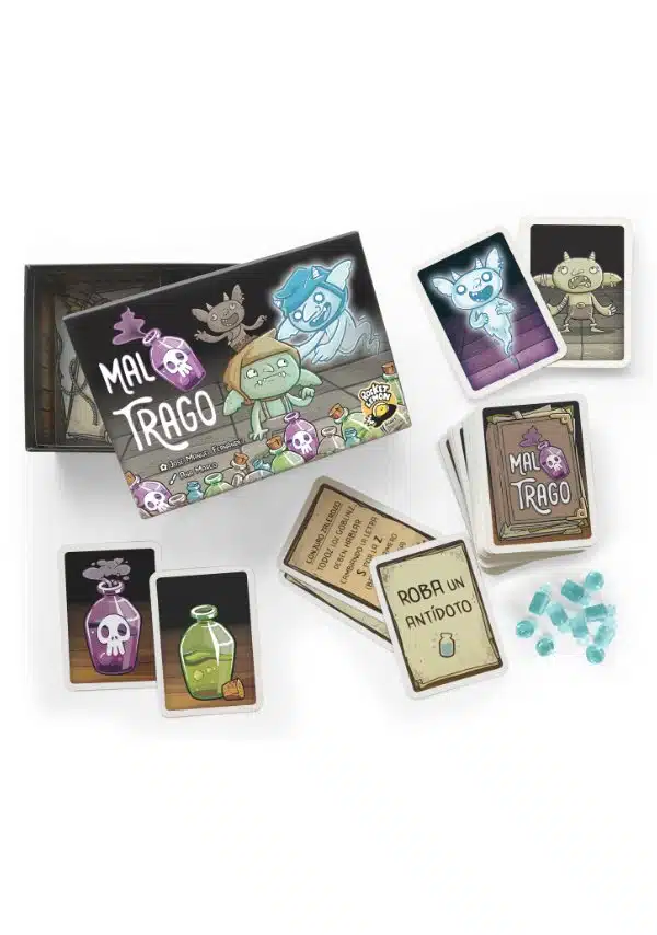 Mal Trago es el primer juego publicado del autor malagueño José Manuel Fernández Aguilera, ilustrado por Ana Marco y editado por Rocket Lemon Games. Con los goblins como protagonistas, deberemos intentar sobrevivir a las pociones de la bruja.