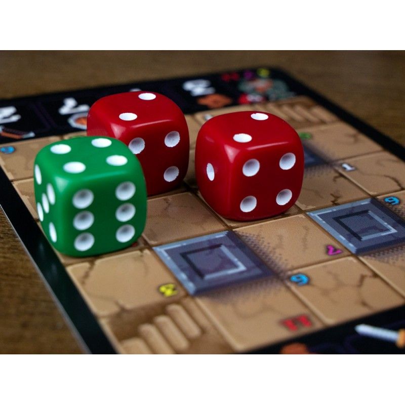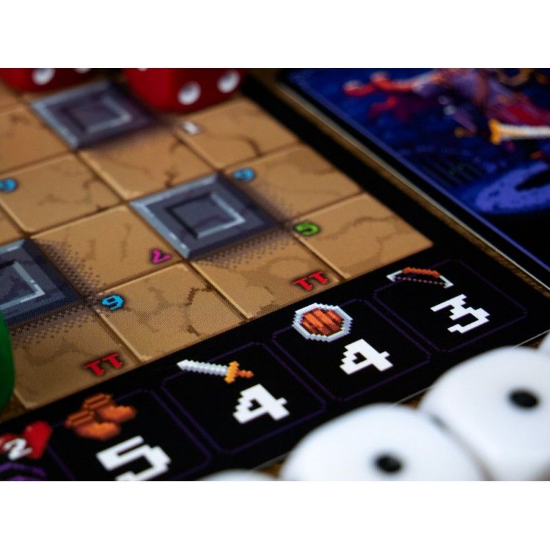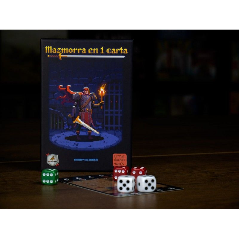 Mazmorra en 1 carta es un juego para un solo jugador de exploración de mazmorras y colocación de dados que se juega sobre una única carta. Lucha a través de 12 Niveles de dificultad creciente hasta alcanzar el premio final: el Cetro de M’Guf-yn.