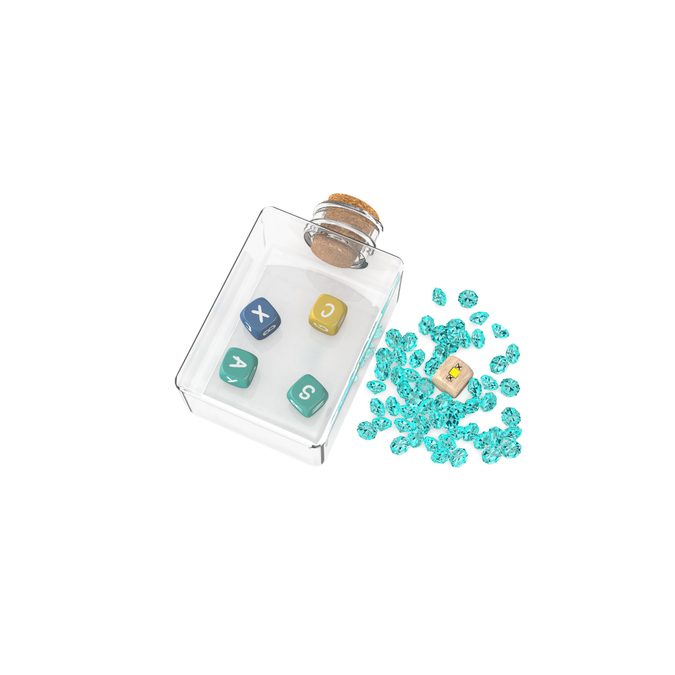 Agita la botella con los dados en su interiorSé el primero en decir una palabra con todas las letras que muestren los dadosGana diamantes por tus respuestas correctasComplica el juego agregando el dado de efecto.