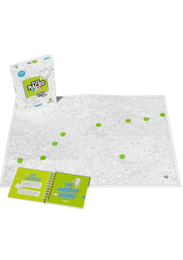 MicroMacro Kids es un juego de mesa de detectives e investigación ideal para niños y familias. Conviértete en un investigador y resuelve misterios ocultos en un enorme mapa lleno de secretos y sucesos intrigantes.