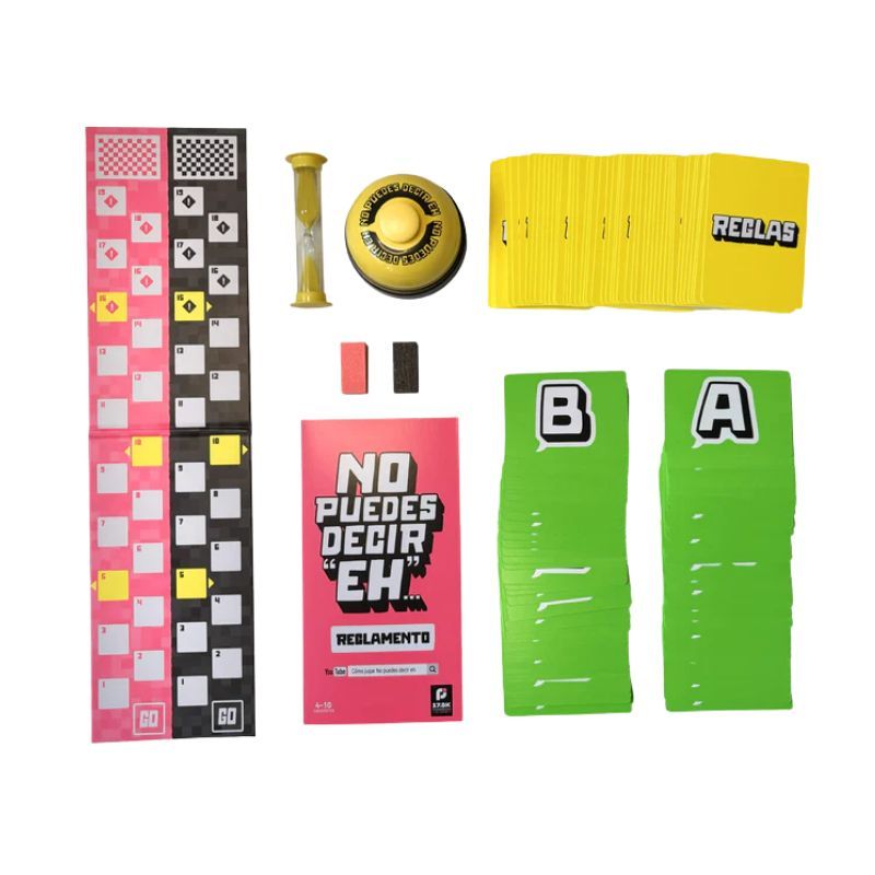El juego de mesa No Puedes Decir Eh es un party game rápido, dinámico y cargado de risas. La premisa es sencilla, pero sorprendentemente desafiante: tendrás que describir palabras a tu equipo sin caer en los típicos “eh” o “mm”, mientras el equipo contrario está al acecho con un timbre en la mano.