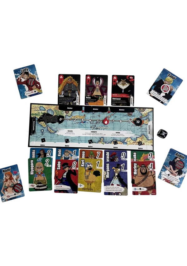 One Piece Nakama – Amigos y Enemigos es un juego de mesa cooperativo para 1 a 5 jugadores, ambientado en el universo de One Piece. Asume el rol de Luffy y los Sombrero de Paja mientras viajas por la saga completa reclutando aliados, completando misiones y derrotando enemigos para lograr tu objetivo final: ¡convertirte en el Rey de los Piratas!