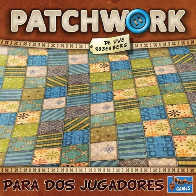 En Patchwork, dos jugadores compiten para construir la colcha más estética en un tablero personal 9×9. Los jugadores comienzan con cinco botones como moneda. En tu turno, compras uno de tres parches disponibles o pasas. Al comprar, pagas botones, mueves el marcador y colocas el parche en tu tablero. Ganas botones adicionales al pasar ciertos puntos del track de tiempo. El primer jugador en llenar un cuadrado 7×7 gana 7 puntos extra. El juego termina cuando ambos llegan al centro. Gana quien tenga más puntos, sumando botones y restando espacios vacíos.