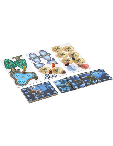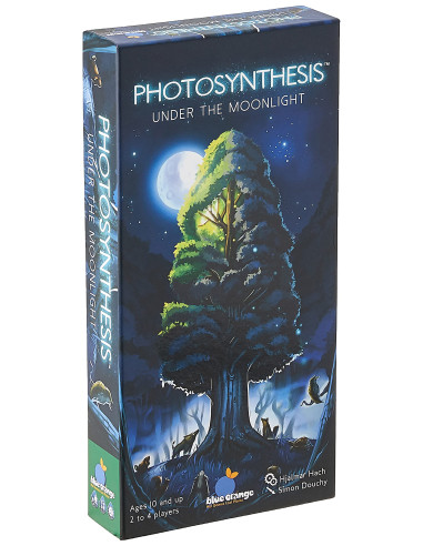 Mejora el mundo de Photosynthesis con la expansión Under the Moonlight. La luna gira en dirección opuesta al sol y proyecta su luz sobre el bosque. Los jugadores acumulan puntos lunares para su nuevo animal del bosque y así activar poderes especiales. ¿Cuál de los ocho animales será el tuyo? El jabalí recolecta árboles, el erizo planta semillas, el zorro roba y traslada semillas, y el búho convierte los puntos lunares en puntos solares.