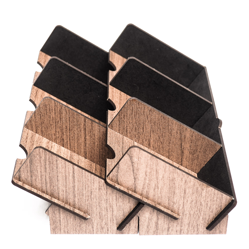 Con un sistema de apilamiento única, permite apilar infinitas, ahorrando espacio mesa, mejorando visibilidad y agilizando selección y toma de cartas.