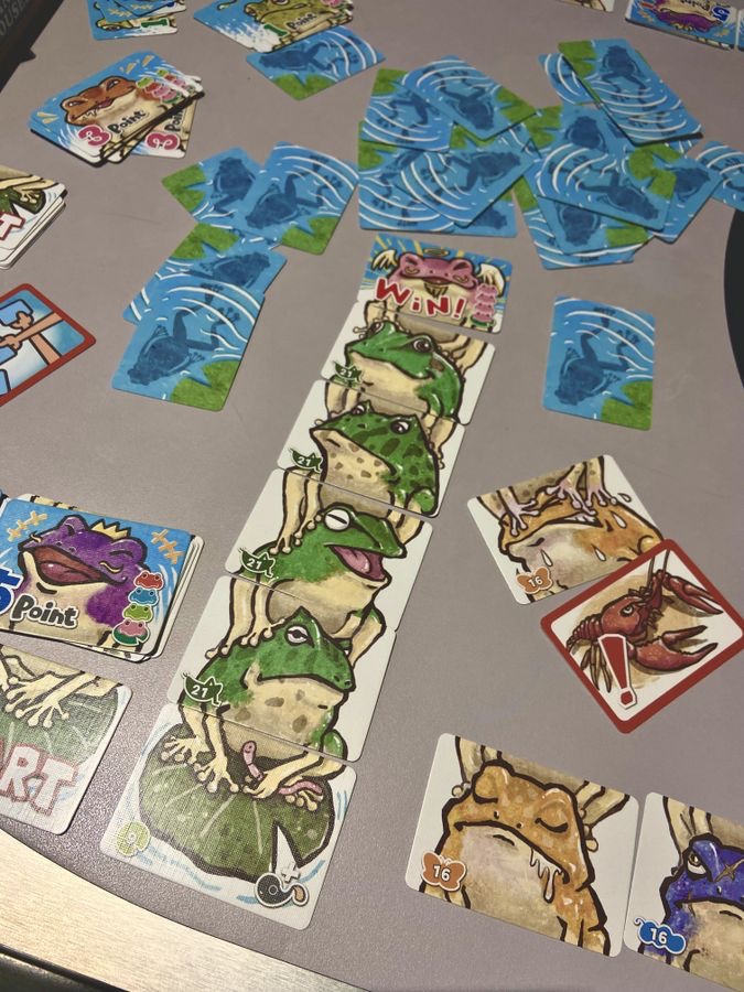 En tu turno, voltea tantas cartas como quieras para recolectar ranas. Eso es todo, pero si te vuelves demasiado codicioso, las ranas se dispersarán.