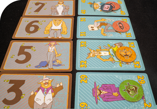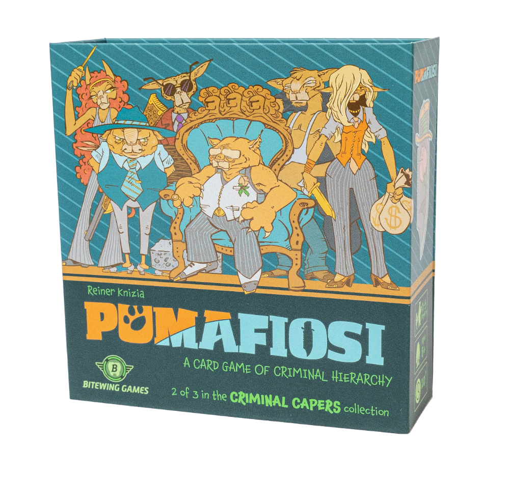Pumafiosi es una mezcla refrescantemente única de trick-taking simple y un press-your-luck precario. En cada truco, la persona que juega la segunda carta más alta gana, y decide dónde colocar esa carta ganadora en la jerarquía. Incluso puedes elegir colocar tu miserable carta en la cima de la jerarquía para reclamar los puntos del gran jefe.