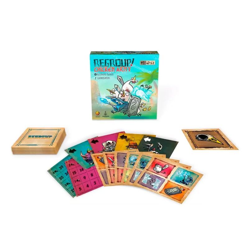En Regroup! Chicken Army organiza tu ejército de pollos guerreros y pollos magos para luchar con los ejércitos de las otras personas. ¡Hasta que quede uno solo! En cada turno, eliges una carta y la. Olores sobre otra carta en tu cuadrícula buscando una coincidencia entre el ataque o la defensa de tus guerreros o magos. Una vez que todas las personas han colocado y organizado su carta, finaliza la ronda y comienza el combate.