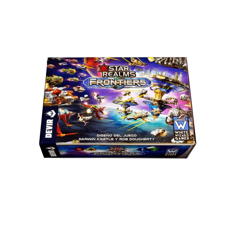 Star Realms: Frontiers es un nuevo juego completamente independiente de la serie Star Realms. De los creadores del juego de cartas original, Robert Dougherty y Darwin Kastle en el año 2018, se presenta este juego en una lujosa caja con todo lo necesario para comenzar a jugar en partidas apasionantes de hasta cuatro jugadores. Puede combinarse con Star Realms y Star Realms: Colonias.