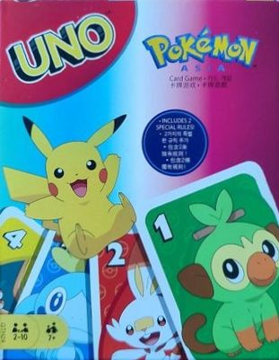 ¡Únete a Pikachu y todos sus amigos en esta edición de Pokémon de UNO! Domina el juego con las reglas especiales de ‘Tráfico de Snorlax’ y ‘Enlace de Batalla’. Cuando te quede solo una carta, ¡no grites ‘pika pika’, grita UNO! La baraja incluye 4 cartas especiales de comodín: Tráfico de Snorlax (el siguiente jugador roba 3 cartas y descarta todas las cartas del color elegido) y Enlace de Batalla (el siguiente jugador roba una carta y si no coincide con el color, roba otra). Puedes jugar el UNO tradicional o con estas cartas adicionales para una experiencia diferente.