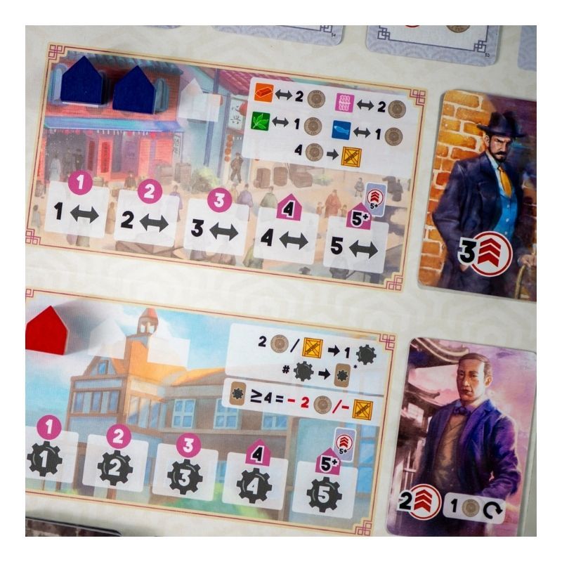 En la emocionante era Meiji, reúne y comercia con recursos como el cobre, la seda, el té y el pescado. Adopta innovaciones extranjeras para obtener ventaja tecnológica. Construye tiendas y casas de comercio para fortalecer tu influencia. Cada bullicioso distrito de Yokohama ofrece beneficios únicos; explótalos sabiamente para superar a tu oponente.